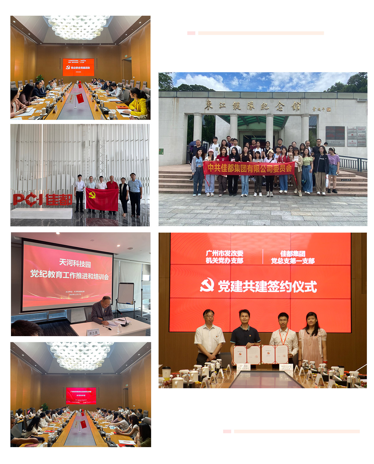 1998年,成立党支部,是广州市最早成立党组织的民营企业之一;2012年,佳都党支部成长为党总支,全面布局以人工智能为核心的战略新兴产业。2021年,党委成立,现有党员近300人,下设五个支部,由集团高级副总裁刘佳任党委书记。